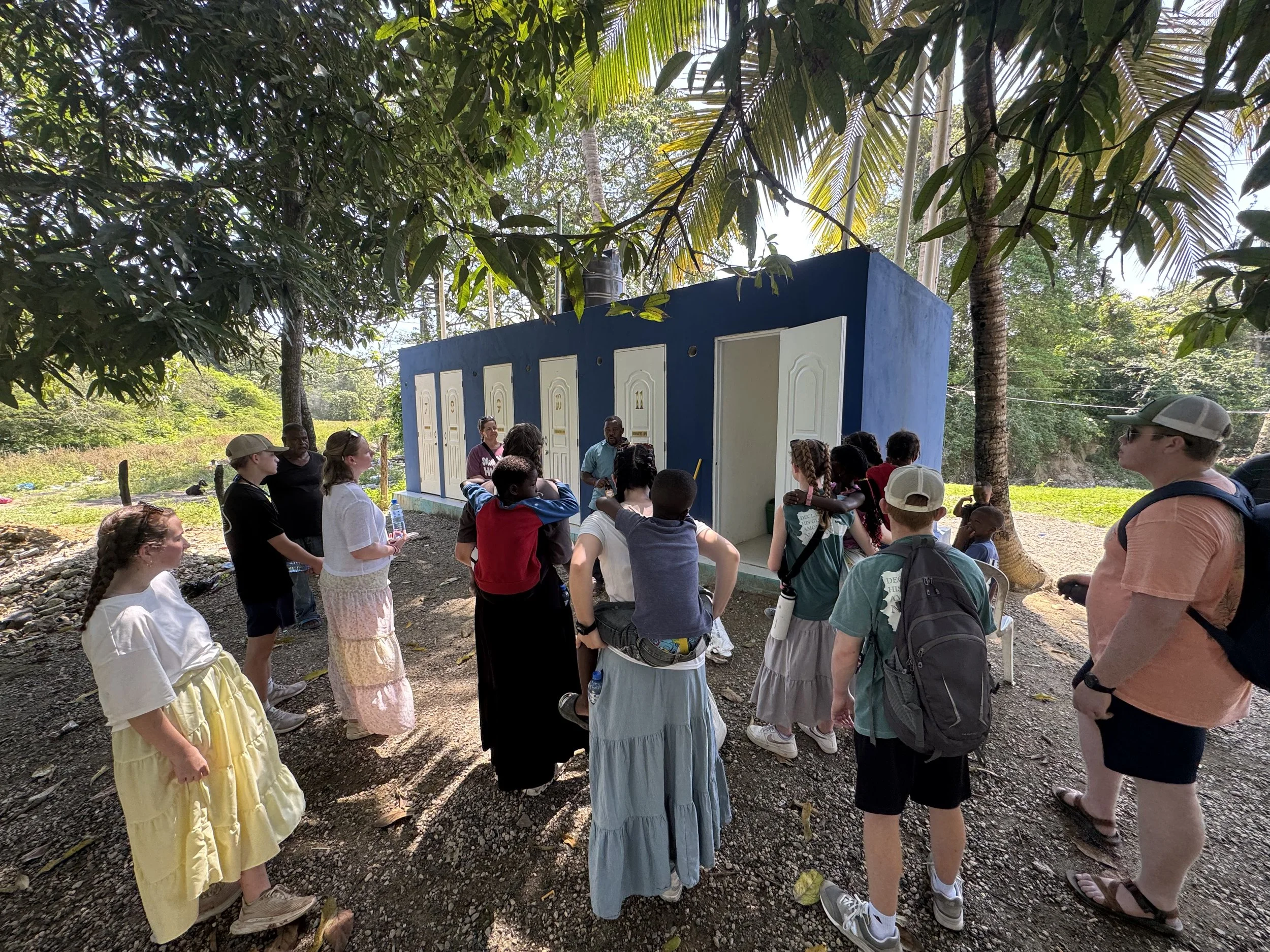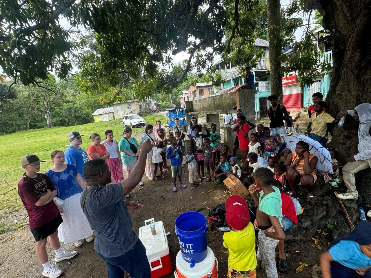Following our morning tour, we returned to our guest house for lunch and a few minutes of cool air before leaving for a more remote community called Maggiolo. Here we briefly toured and were able to see the garbage dump from the community. The poverty level was in Maggiolo was significantly worse than our morning tour. We learned that many people in this community are Haitian and will go to the garbage dump to scavenge for things that might resell or use for their own homes. The structures they live in are built scrap wood and scrap metal. But in this community we also hosted our first VBS with 33 children. We tought a lesson on the Woman at the Well in the midst of a good little rain storm and when we return, you should ask a team member about the water filtration system demonstration we saw today too! But it did not damper our joy to spend time jumping rope, playing baseball, having piggy-back races, and so much more with the children from the community. Their joy was contagious and we enjoyed our time with the people of Maggiolo.